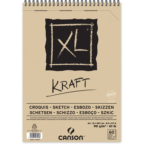 CANSON Album spiralé de 60 feuilles de papier dessin XL KRAFT, format A4, 90G
