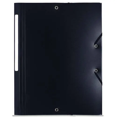 En polypropylène opaque 5/10e. Étiquette de dos adhésive. Fermeture par élastiques fixés en 1ère de couverture. Capacité : 200 feuilles.