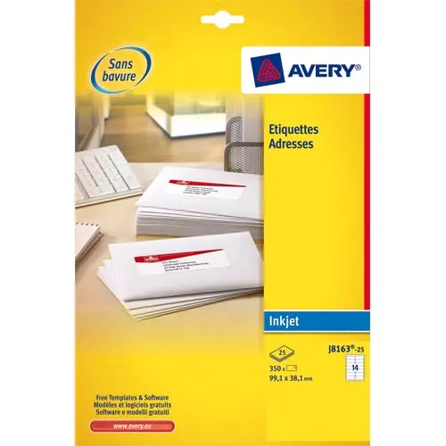 AVERY Boîte de 350 étiquettes adresses jet d'encre 99,1x38,1mm blanches J8163-25