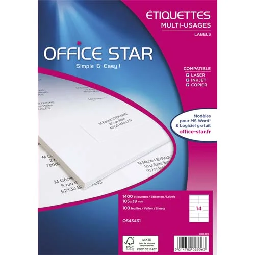 OFFICE STAR Boîte de 800 étiquettes multi-usage blanches 99,1 x 67,7 mm OS43438
